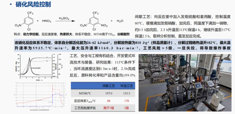 5. 间歇硝化工艺,通过反应风险研究,进行工艺与工程优化和过程强化,实现连续硝化和自动化。